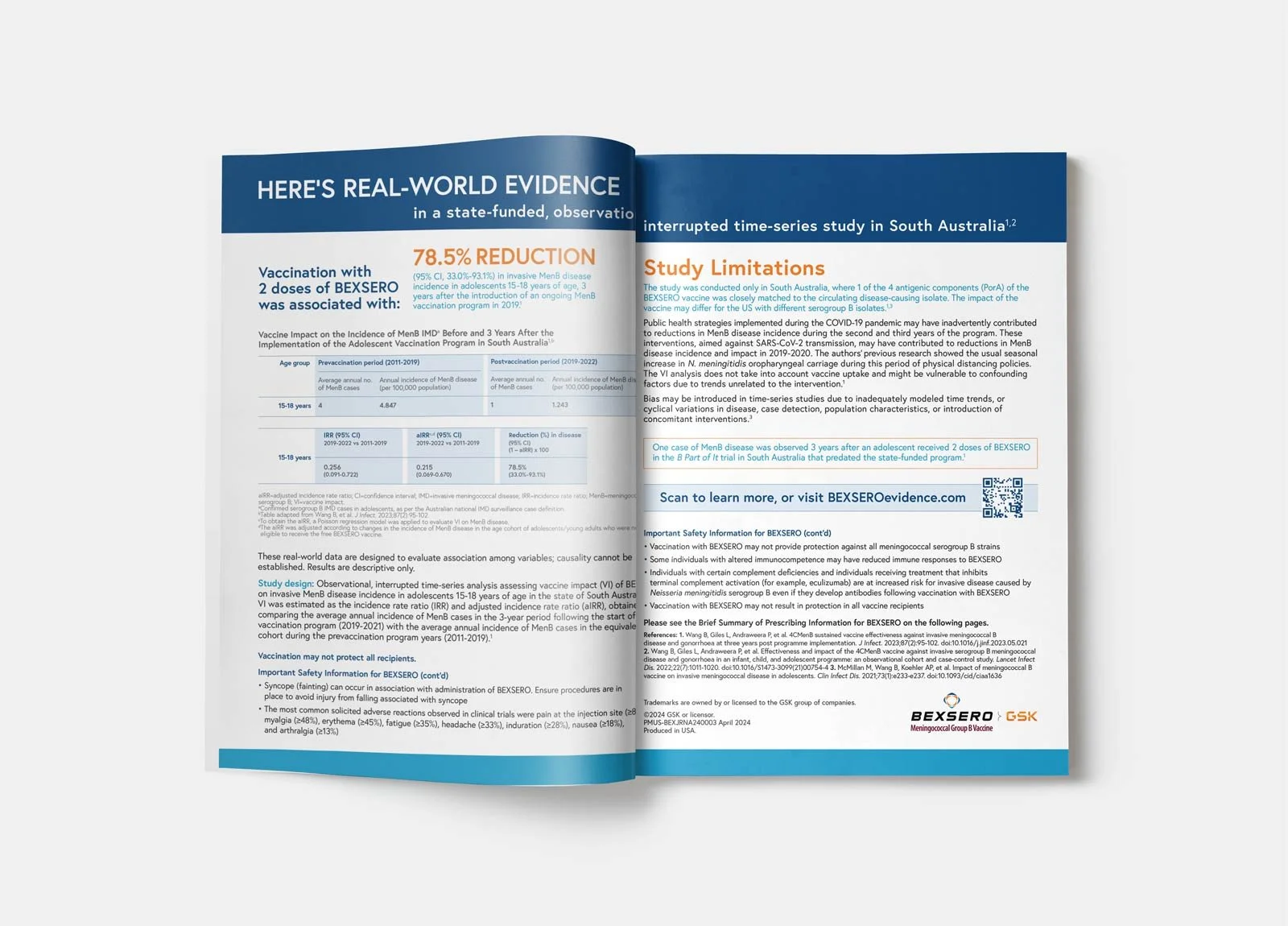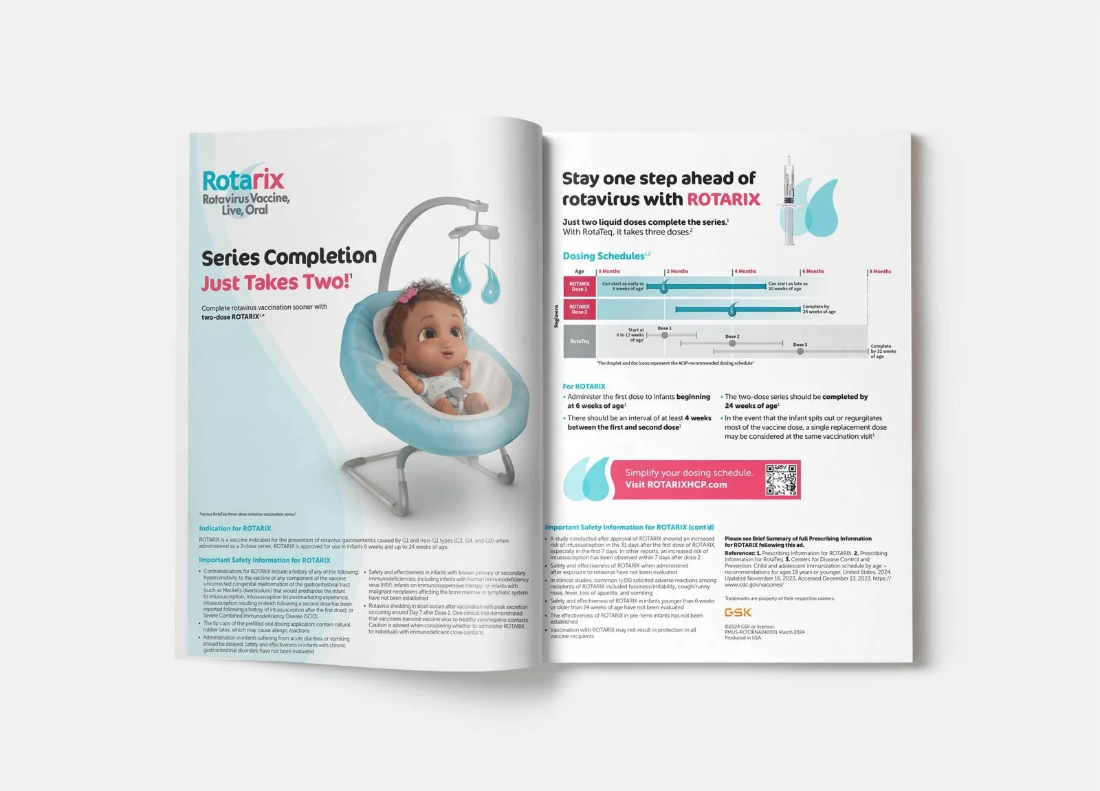 Supported the brand on multiple channels including print advertisements, direct mail, website, eSales aids, email and HTML banner ads. Brands include BEXSERO, MENVEO, ROTARIX, PRIORIX, SHINGRIX and PEDIARIX.